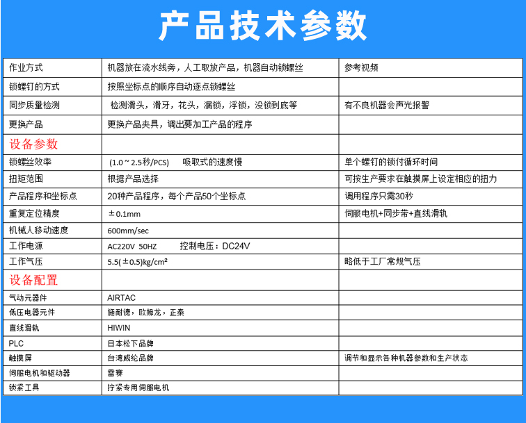 桌面型自動鎖螺絲機——規格參數: